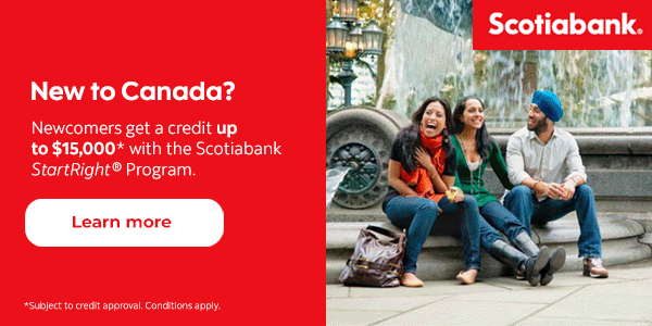 Scotiabank has a long history of helping newcomers successfully build their life in Canada. Join the Scotiabank StartRight® Program and get a credit up to $15,000*¹